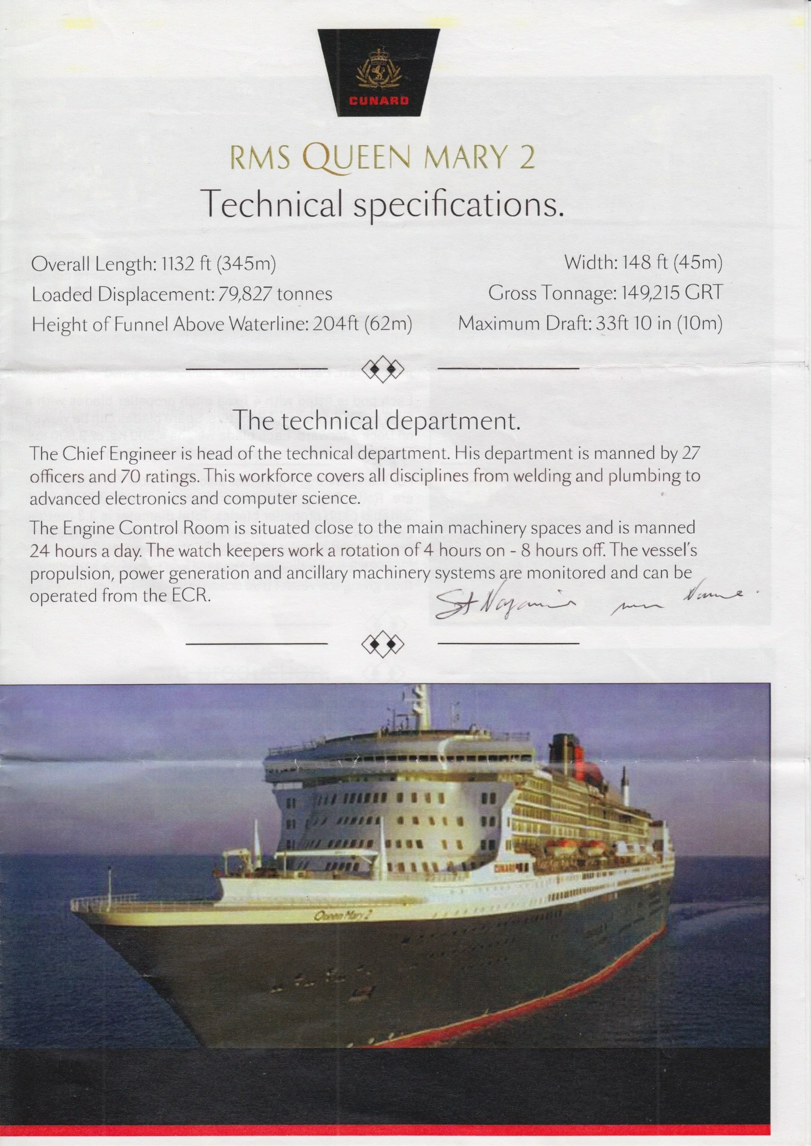 QM2 “mpg” @ 29 kts ~= 176088/5626 = 31.3 ft/gal